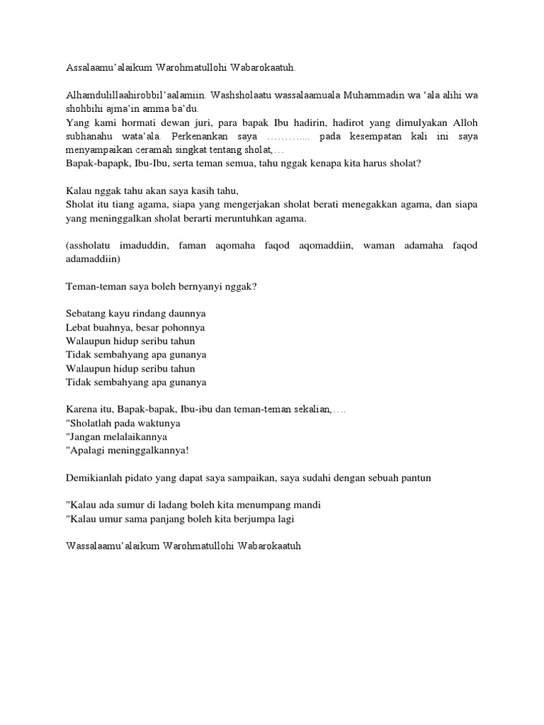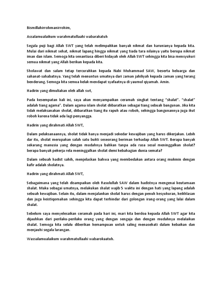 Pildacil tentang ibu pidato singkat tentang sholat itu tiang agama teks pildacil tentang menuntut ilmu teks pildacil anak sholeh teks pildacil lucu kultum singkat tentang sholat 5 waktu ceramah singkat tentang sholat berjamaah teks pidato lucu islami. Mohon maaf atas segala kekuarangannya. Sehingga pentingnya sholat ini menempati kedudukan yang nomor 2 dalam Rukun Islam.
