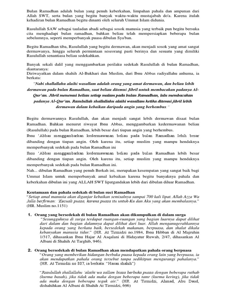 Hadits Tentang Sedekah Di Bulan Ramadhan Nusagates