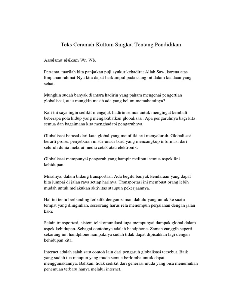 Teks Ceramah Kultum Singkat Tentang Pendidikan