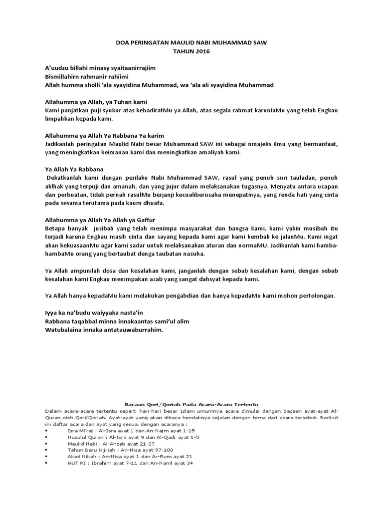 Doa Peringatan Maulid Nabi Muhammad Saw