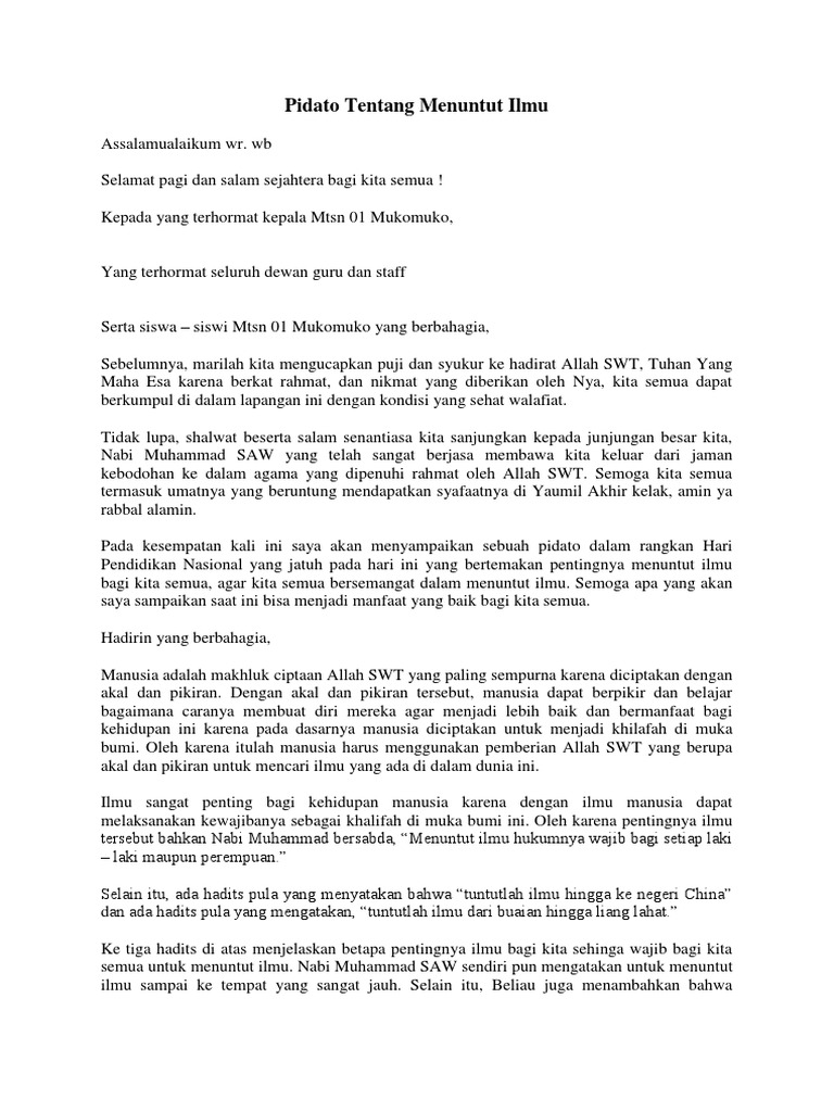 Doc Contoh Pidato Tentang Menuntut Ilmu Isti Tibah Atiroh Academia Edu